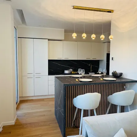 The accommodation overlooks the garden and comprises a balcony, a dressing area, and a kitchen with climate control and a washing machine. For added convenience, a spa bathtub, a walk-in shower, and a separate toilet are available at the apartment. Hair dryers can also be found.